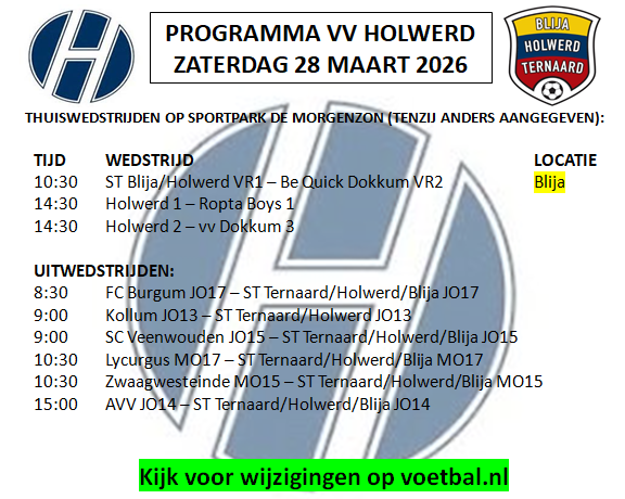 De jeugdteams van vv Holwerd lopen er weer prachtig bij! Dankzij een mooie samenwerking met onze sponsoren Moorman Isolatie Advies, MFA Holwerd en de Club van 50 zijn de jeugdspelers voorzien van splinternieuwe wedstrijdtenues. De teams JO7, JO8, JO9, JO10 en JO12 verschijnen vanaf nu in een frisse, uniforme uitstraling op het veld. Een geweldige…